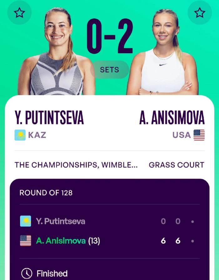 进入第二盘的较量后,不知道是不是普丁塞娃被彻底打懵崩盘了,已经无心恋战,让这一盘像首盘一样,变成了阿尼西莫娃的表演赛,又让美国姑娘迅速打了她一个5比0。
