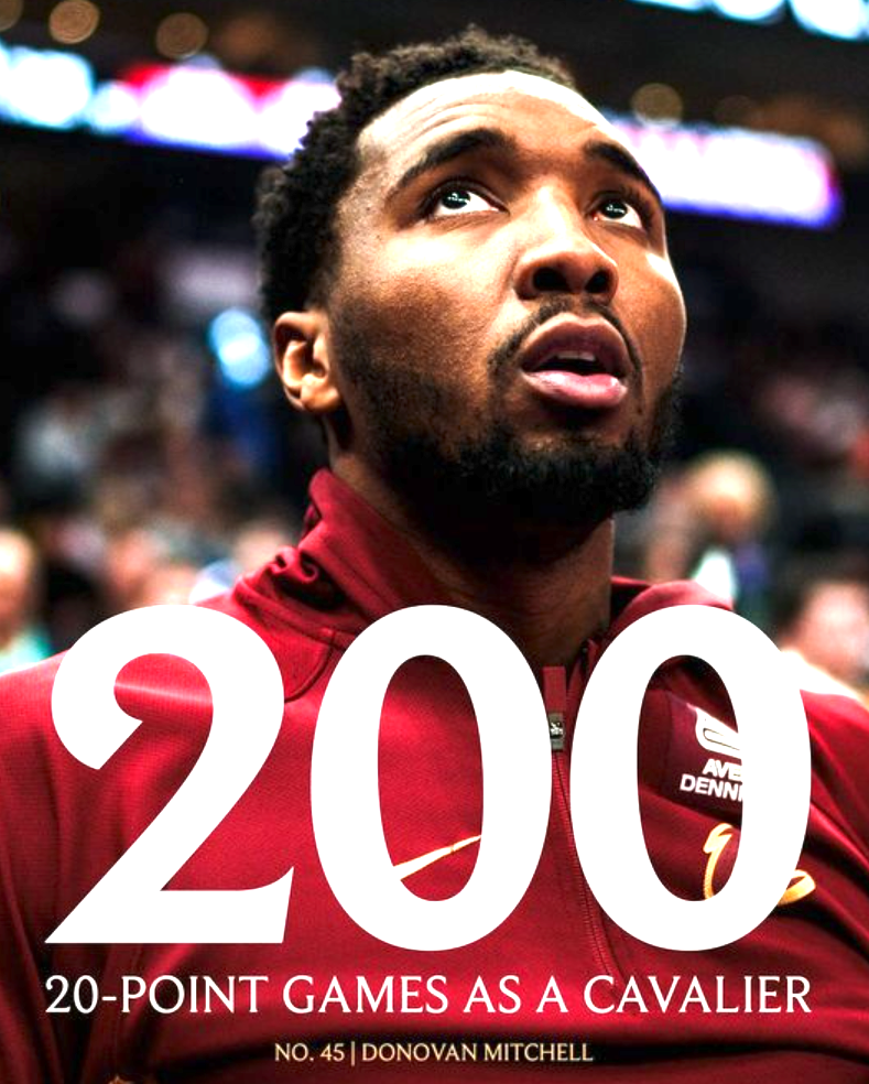 具体球员表现上,骑士三人20+,哈登上半场效率低迷,下半场状态及时回暖,23中6,3分10中4,罚球5中5,得到21分5篮板4助攻2抢断;米切尔发挥稳定19中12,得到31分7篮板4助攻;值得一说的是,米切尔此役打成一项里程碑,骑士生涯第200场20+,他成为骑士队史上第5个能够得到200场20+的球员。前4个分别是詹姆斯、布拉德·多尔蒂、欧文和奥斯汀·卡尔。此外,米切尔本赛季已34次砍下30+,这是骑士队史自09-10赛季的詹姆斯以来,单赛季砍下30+最多的球员。